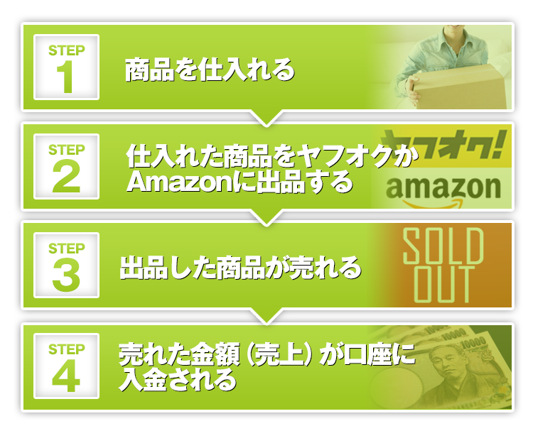 ・Amazonやヤフオク!を使って国内で販売するビジネス