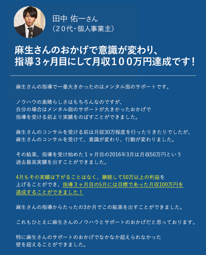 たったの3ヶ月で月収100万円を達成しました。