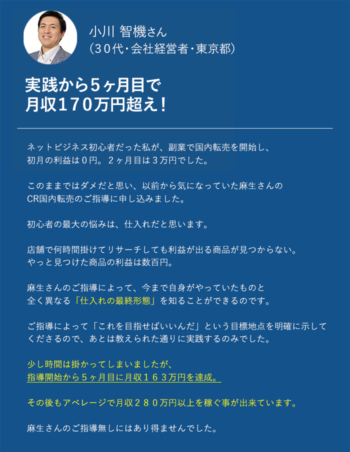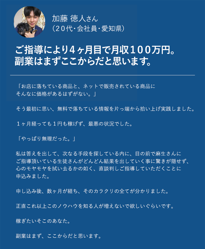 「国内転売は稼げる」という情報を知ったということだけです。