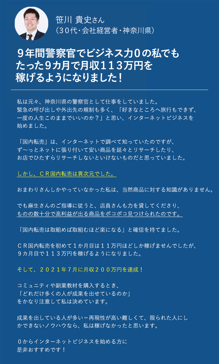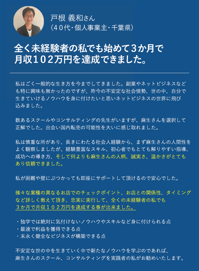 何より私と同じようにネットビジネスに出会うことができました。